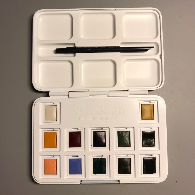 Lebe deine Kreativität... Entdecke deine kreative Ader, die deine künstlerischen Fähigkeiten zum Fliegen bringt... Workshop-Angebote Aquarell-Farbkasten, 12 gedämpfte Farben von Van Gogh Inklusive Steck-Pinsel Grösse 2 und eine mobile Mischpalette. Klein aber oho! Unser Tipp: alle Farben auf einer Tabelle im Verlauf aufmalen und gutes Papier verwenden! (zum Beispiel unser Fabriano Mixed Media-Block) Menge - + CHF 31.00 In den Warenkorb