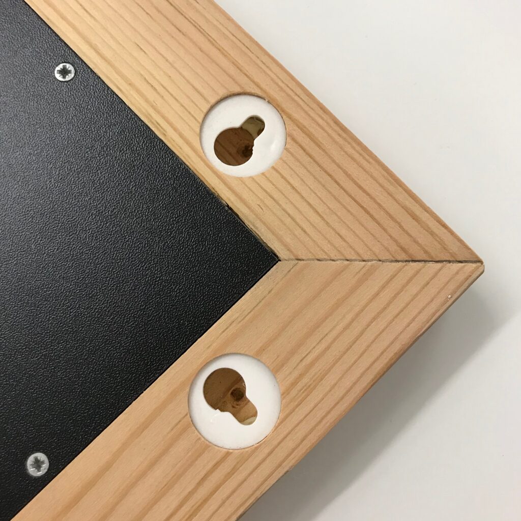 - schwarze Kreidetafel aus magnetischem Kunstharz (nicht nur mit Tafellack beschichtet) und einer schwarzen Trägerplatte aus CDF auf der Rückseite
